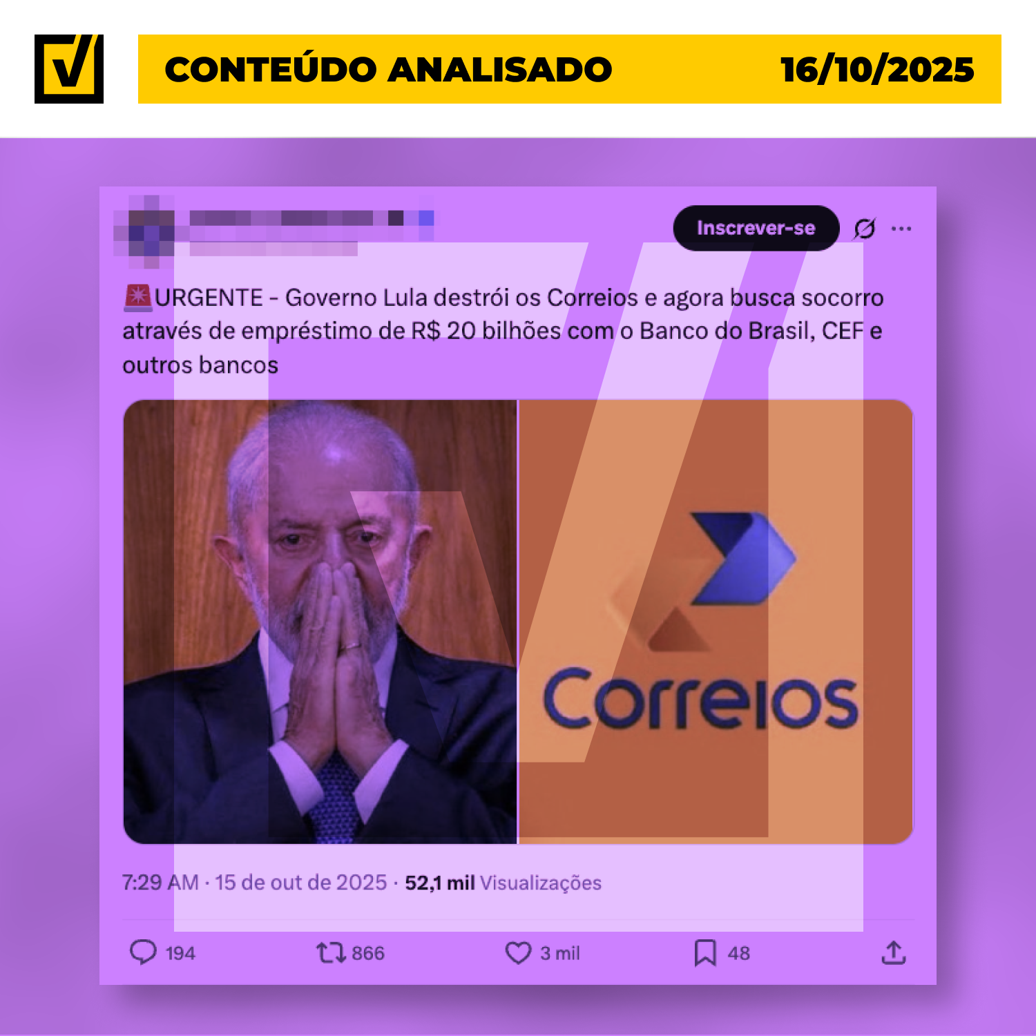 Conteúdo analisado: Publicação que responsabiliza o governo Lula (PT) pela crise nos Correios.