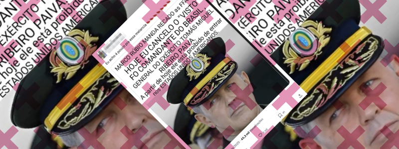 Diferentemente do que diz um post no X, o visto do general Tomás Paiva não foi cancelado pelo governo dos EUA. O conteúdo verificado mostra uma foto do militar e um texto, com alguns erros de português, alegando que o visto do general foi cancelado pelo atual secretário de Estado dos Estados Unidos, Marco Rubio. […]