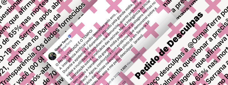 É falso que uma interação do deputado federal Osmar Terra (MDB-RS) com a ferramenta de inteligência artificial Grok, da rede social X, possa provar a veracidade de suas críticas à vacina contra a covid-19. Terra alega que mortes pela doença teriam aumentado na cidade de Serrana (SP), em 2021, após uma vacinação em massa. Na […]