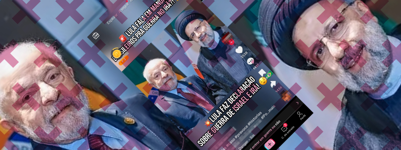 O presidente Luiz Inácio Lula da Silva (PT) não falou em enviar soldados para o Irã ou mencionou apoio bélico ao país na guerra contra Israel. Vídeo narrado por inteligência artificial afirma que o mandatário teria afirmado em “coletiva tensa” que o Brasil pode apoiar o Irã com envio de tropas, mas não há registro […]