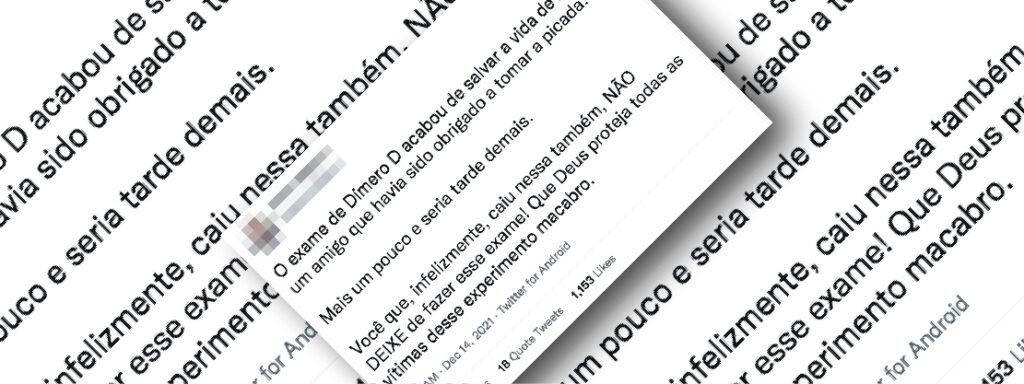 Conteúdo verificado: Áudio no WhatsApp no qual uma mulher recomenda que as pessoas que se imunizarem contra a covid-19 realizem o exame de dímero-D, utilizado para detectar possíveis quadros trombóticos. Ela relata que seu marido estava com um índice alto de dímero-D mais de 30 dias após tomar a segunda dose da Pfizer, mesmo sem […]