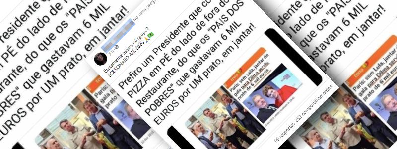 É falso o post viral que afirma: “Prefiro um presidente que come pizza em pé, do lado de fora do restaurante, do que os ‘pais dos pobres’, que gastavam 6 mil euros por um prato em jantar!”. Reportagem do Terra, cujo título – “Paris: sem Lula, jantar de gala para Dilma serviu prato de 6 […]