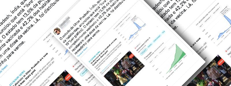 Conteúdo verificado: Postagem no Twitter mostra imagens de gráficos e matéria do jornal indiano Hindustan Times afirmando que 33 distritos do estado de Uttar Pradesh estão livres da covid-19. Ainda neste tuíte, a autora menciona que neste estado foi distribuído “um remedinho para verme”, fazendo alusão ao vermífugo ivermectina. No entanto, na matéria do jornal […]