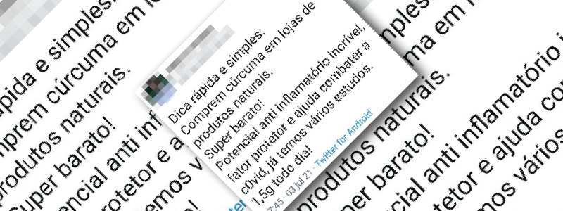 Conteúdo verificado: Texto publicado no Instagram e no Twitter, no qual um médico indica que as pessoas comprem a cúrcuma em lojas de produtos naturais para ajudar a combater a covid, pois, de acordo com ele, já existiriam vários estudos a respeito disso. Ele ainda afirma que a planta tem potencial anti-inflamatório e “fator protetor”. […]
