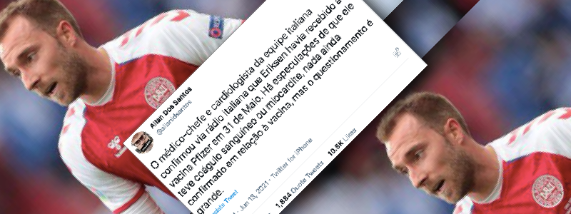 Conteúdo verificado: Um tuíte do blogueiro bolsonarista Allan dos Santos alega que o jogador de futebol Christian Eriksen, vítima de um mal súbito enquanto jogava, teria tomado a vacina da Pfizer contra a covid em 31 de maio. O blogueiro associa o mal-estar com o fato do jogador ter sido supostamente imunizado. É falso que […]