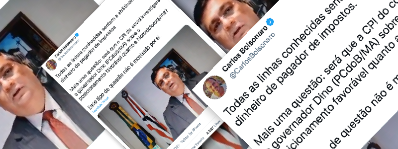 Conteúdo verificado: Tuíte do vereador Carlos Bolsonaro (Republicanos-RJ) compartilha um vídeo em que aparece o governador do Maranhão, Flavio Dino (PCdoB-MA), e pergunta se a CPI investigará também o governador sobre seu posicionamento favorável à hidroxicloroquina. É enganoso um tuíte de Carlos Bolsonaro, filho do presidente da República e vereador pelo Rio de Janeiro, afirmando […]