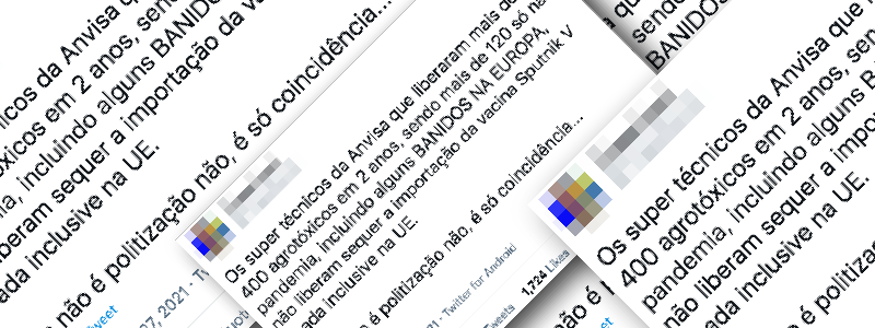 Conteúdo verificado: Tuíte que levanta suspeitas sobre a não liberação da vacina russa Sputnik V pelos técnicos da Anvisa e faz uma comparação com a liberação de agrotóxicos no país. Perfil no Twitter levanta suspeitas sobre a decisão dos técnicos da Anvisa de não liberar para aplicação no Brasil a vacina russa Sputnik V. O […]