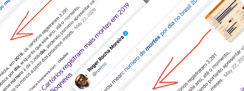Conteúdo verificado: Tuíte do cantor Roger Moreira mostra o print de uma pesquisa no Google e de parte de uma matéria de maio de 2020, do site boqnews, que afirma que o número de mortes registradas até ali, naquele ano, resultava num número diário de óbitos menor do que o de 2019. É enganoso o […]