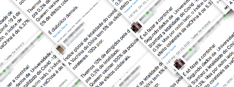 Conteúdo verificado: Tuítes destacam a taxa de letalidade da covid-19 e a comparam à taxa de efeitos colaterais da vacina CoronaVac, com o intuito de dizer que tomar a eventual vacina seria mais perigoso do que a doença. São enganosos os tuítes que comparam a taxa de letalidade da covid-19 com a taxa de reações […]