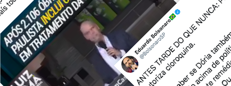 Conteúdo verificado: Tuíte do deputado federal Eduardo Bolsonaro (PSL-SP) com um vídeo do prefeito de São Paulo, Bruno Covas (PSDB), anunciando a inclusão da cloroquina no protocolo de tratamento de pacientes com covid-19 nos hospitais municipais. É enganoso o post no perfil do Twitter do deputado federal Eduardo Bolsonaro (PSL-SP) que apresenta um vídeo no […]