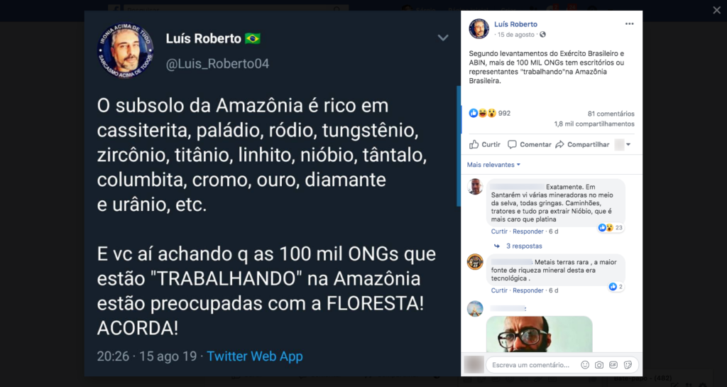É enganosa publicação que associa, sem evidências, ONGs da Amazônia à exploração de riquezas minerais