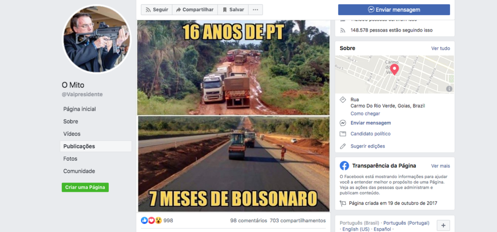 É falsa uma montagem feita com duas fotos para comparar a situação da rodovia BR-163 nos governos petistas e no atual, do presidente Jair Bolsonaro (PSL). No conjunto de imagens, a foto de cima, da estrada em situação precária, é atribuída aos “16 anos de PT”; a de baixo, da estrada em pavimentação, é creditada […]