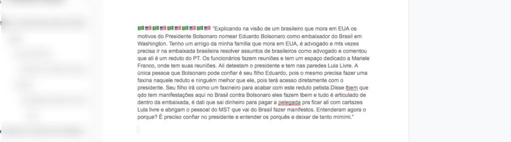 É falso que a Embaixada do Brasil em Washington, nos Estados Unidos, seja um “reduto do PT’” (Partido dos Trabalhadores), que tenha batizado uma sala de reuniões com o nome de Marielle Franco e que tenha sido usada politicamente para apoiar a esquerda, como afirma uma corrente que circula no WhatsApp e nas redes sociais. […]