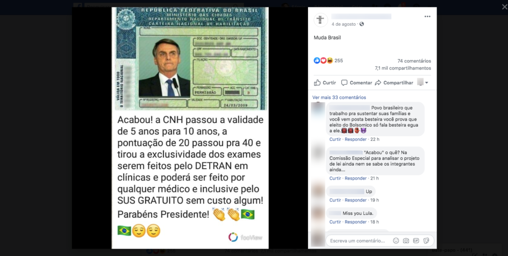 São falsas as afirmações de que a validade da Carteira Nacional de Habilitação (CNH) passou de 5 para 10 anos, que a pontuação limite para suspensão do documento dobrou e que os exames necessários para sua emissão podem ser feitos com qualquer médico. Essas medidas, que foram listadas em publicações amplamente compartilhadas nas redes sociais, […]