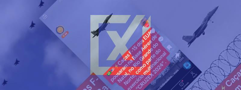 Conteúdo analisado: Vídeo mostra quatro aeronaves sobrevoando no céu. A legenda diz “Caças F-15 dos EUA pousaram na Base Aérea de Natal, no Rio Grande do Norte, como parte do exercício multinacional ‘CRUZEX 2024’”. Onde foi publicado: TikTok. Contextualizando Apesar da legenda da gravação apontar que se trata de um exercício multinacional, comentários na postagem […]