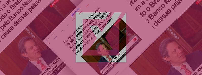 Conteúdo investigado: Site que simula portal de notícias Globo.com com texto que afirma que o ministro da Fazenda, Fernando Haddad, ameaça a segurança financeira nacional e foi processado pelo “Banco Nacional do Brasil” após divulgar uso de plataforma que utiliza inteligência artificial para investir em criptomoedas. Onde foi publicado: Site na internet, LinkedIn e WhatsApp. […]