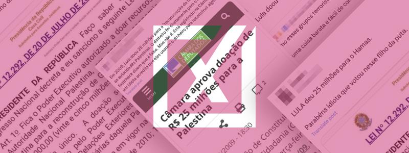 Conteúdo investigado: Publicações afirmam que Lula doou R$ 25 milhões ao Hamas por meio de um decreto em 2010. Os posts vêm acompanhados de uma notícia publicada pela Câmara dos Deputados com o título: “Câmara aprova doação de R$ 25 milhões para a Palestina” e da captura de tela da Lei nº 12.292/2010, que autoriza […]