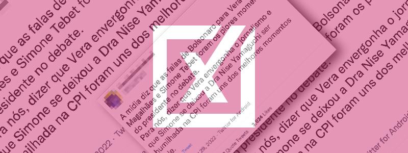 Conteúdo investigado: Tuíte do perfil Família Direita Brasil acusa a senadora Simone Tebet de não evitar que a médica Nise Yamaguchi fosse humilhada na CPI da Covid. No debate da TV Bandeirantes, Tebet negou ter participado da sessão. Onde foi publicado: Twitter. Conclusão do Comprova: É falso que a senadora Simone Tebet (MDB), candidata à […]